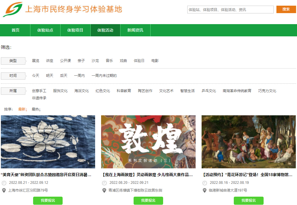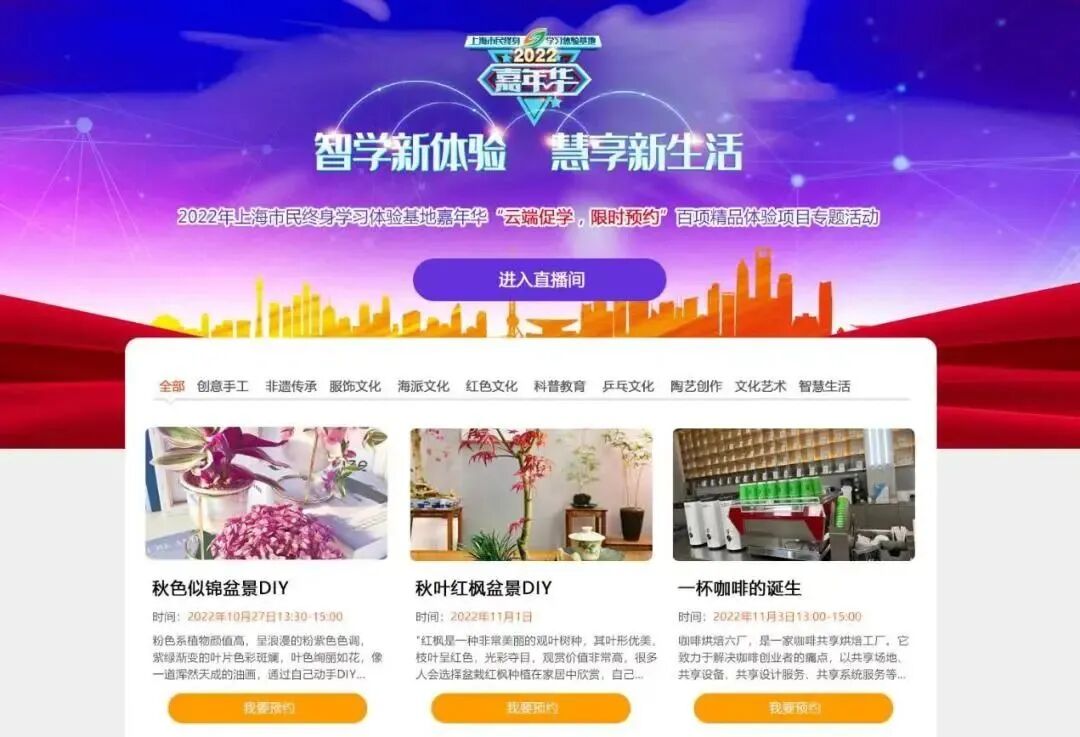 2022年上海市民终身学习体验基地嘉年华将于2022年11月6日-11月25日展开,历时20天。将由市级12家基地80余个站点共同打造,汇聚多层次、多样式的线上和线下体验式学习活动276余项。